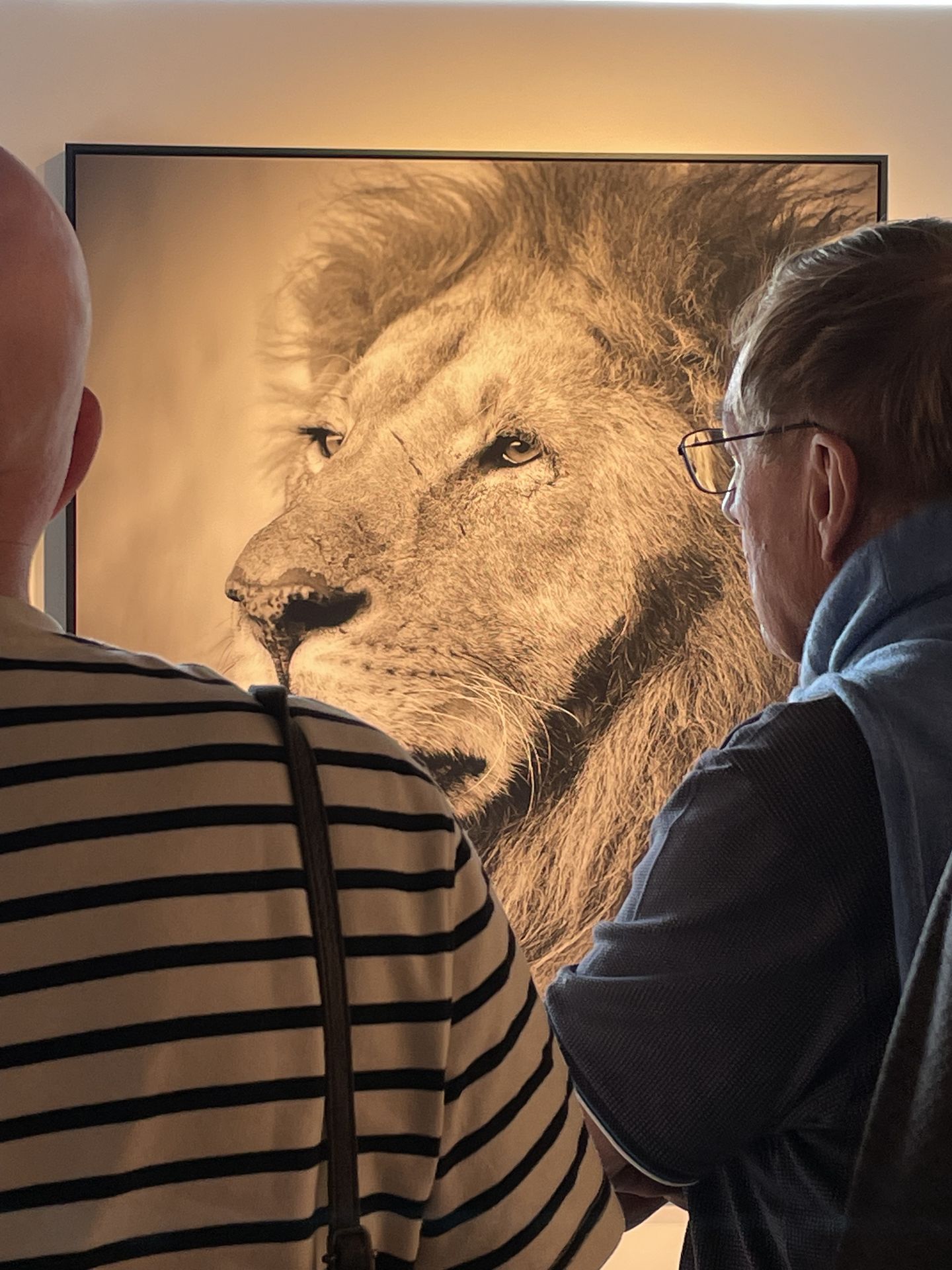Das nächste Vergnügen war, in der Jones Gallery am Zeedijk Sylvia Jones kennenzulernen. Sie präsentierte auf überaus charmante und unterhaltsame Weise die Werke ihres Mannes, Tom D. Jones – Knokkes wohl bekanntestem Fotografen und Belgiens einzigem Hasselblad-Master. Auf dem Foto oben sehen Sie das majestätische Portrait eines Löwen aus seiner Serie „Ephemeral Life“.